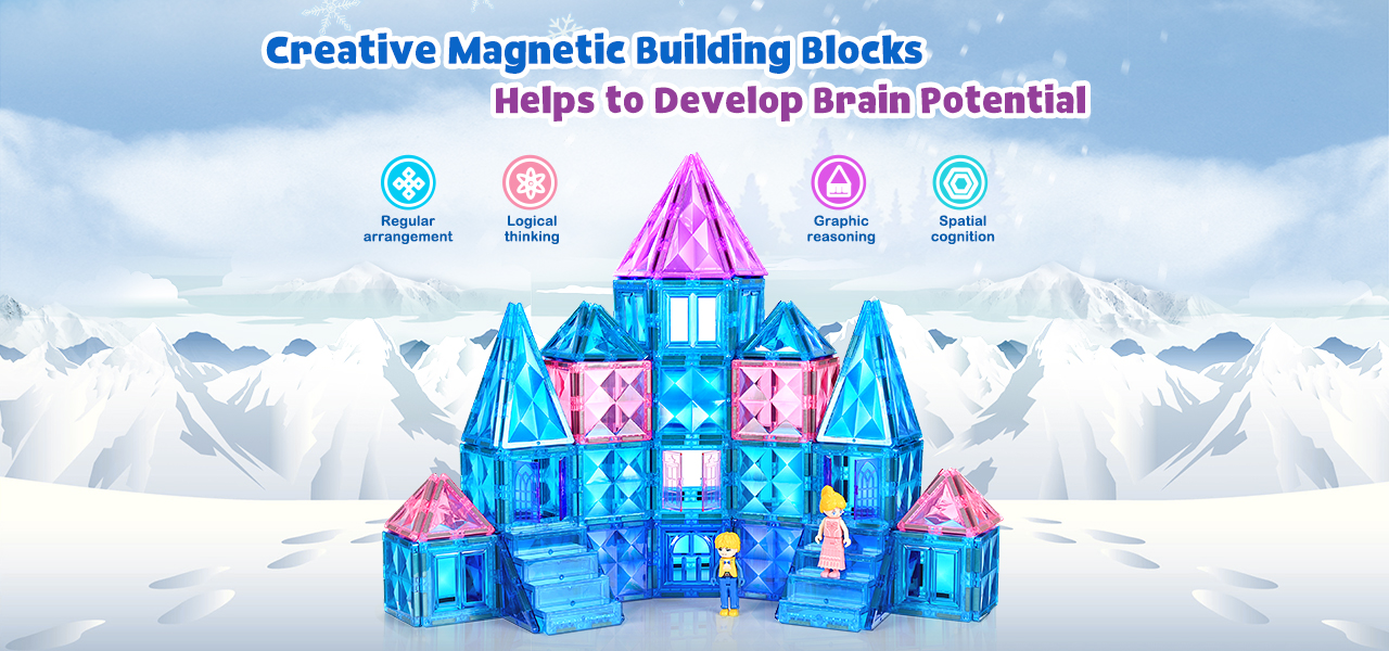 Our Ice Magnetic Building Blocks Premium Set offers a fun activity that allows you to build Your Own Frozen kingdom with your children.