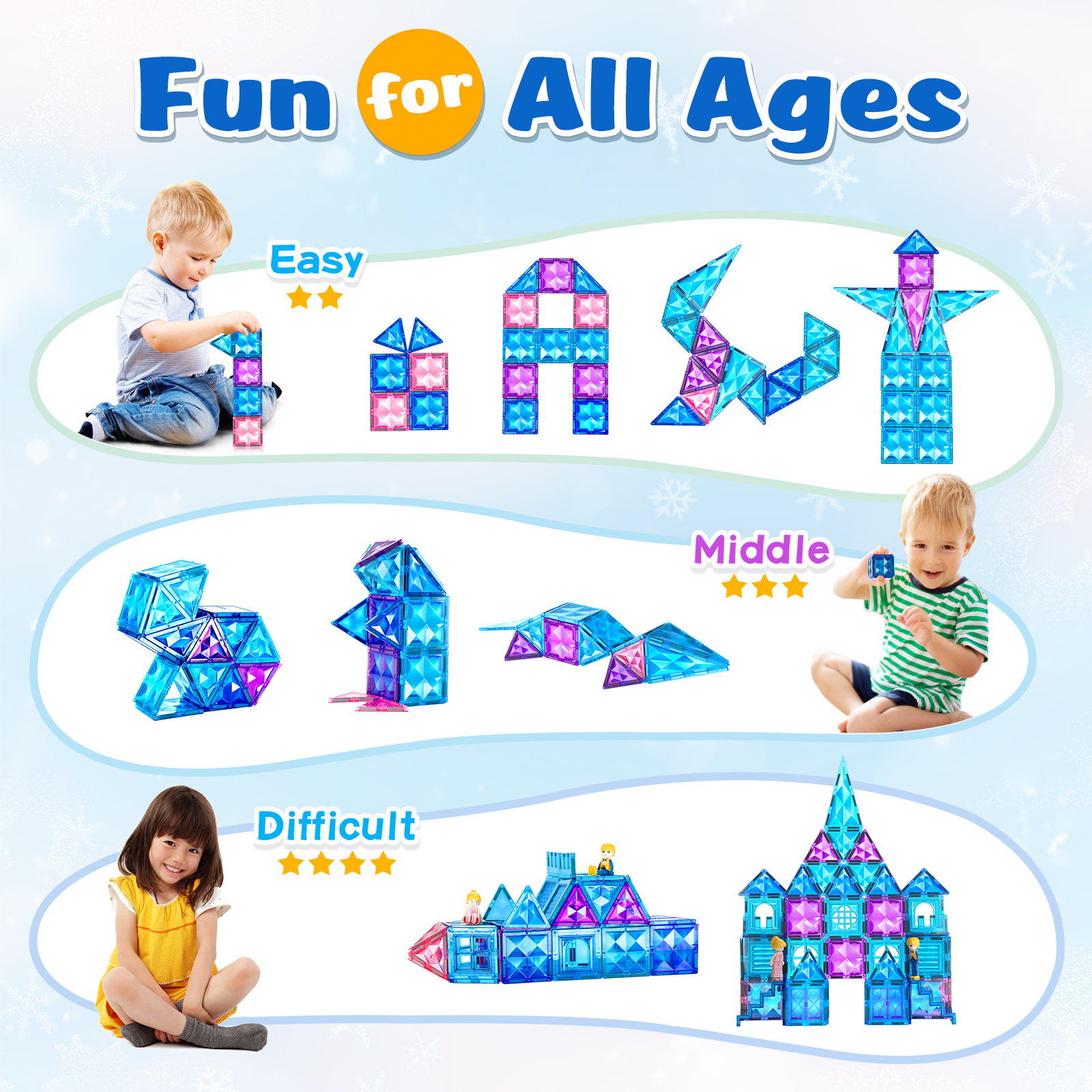 - Pretend Frozen Castle Characters-The Frozen World magnetic tile set is perfect for children to play with and build frozen castles. They can let their creativity and imagination run wild with the help of our magnetic block toys!