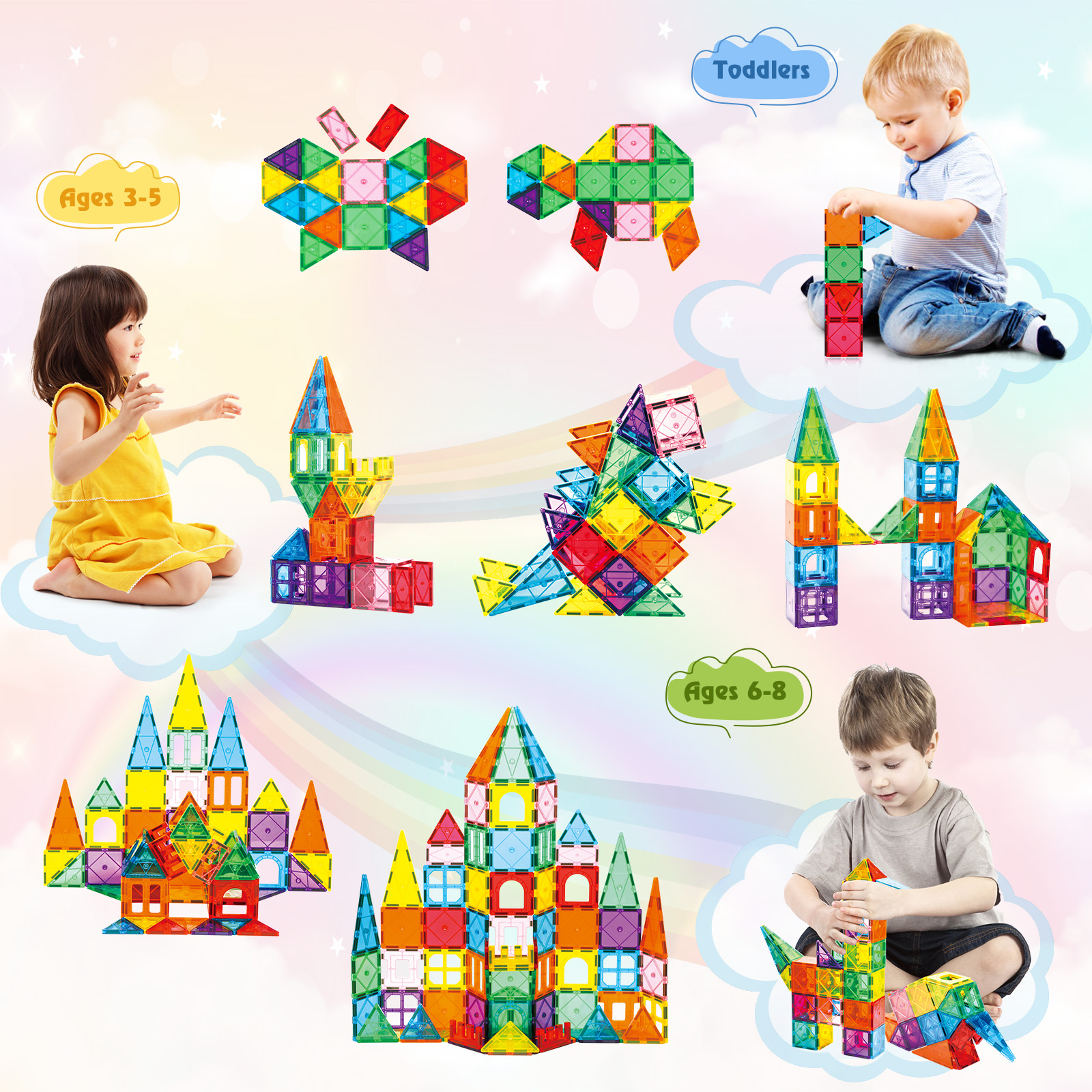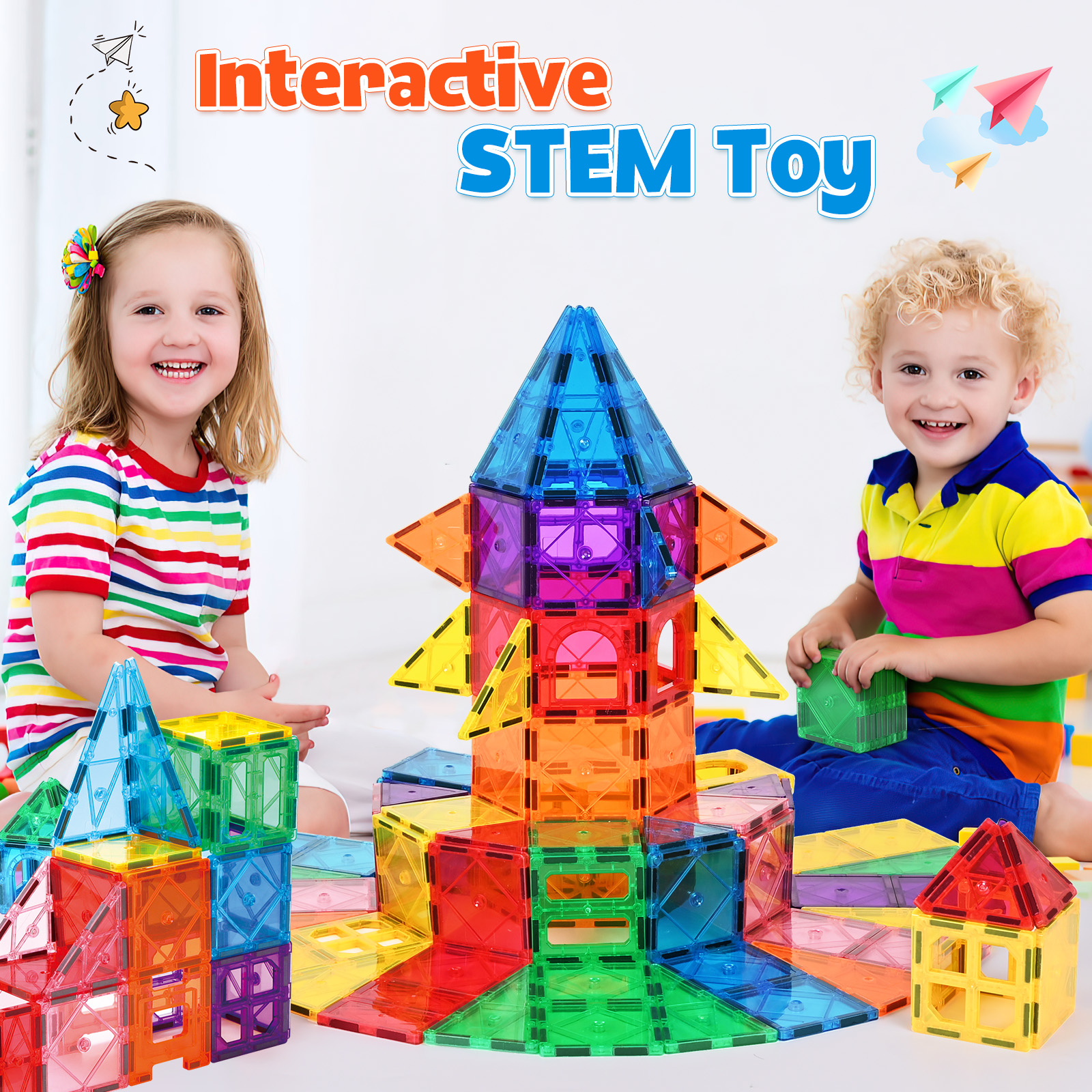 Magnetic Tiles Building Blocks, STEM Montessori Toys Building Sets Gifts for Boys and Girls compatible with Other Magnetic 3D Building Blocks