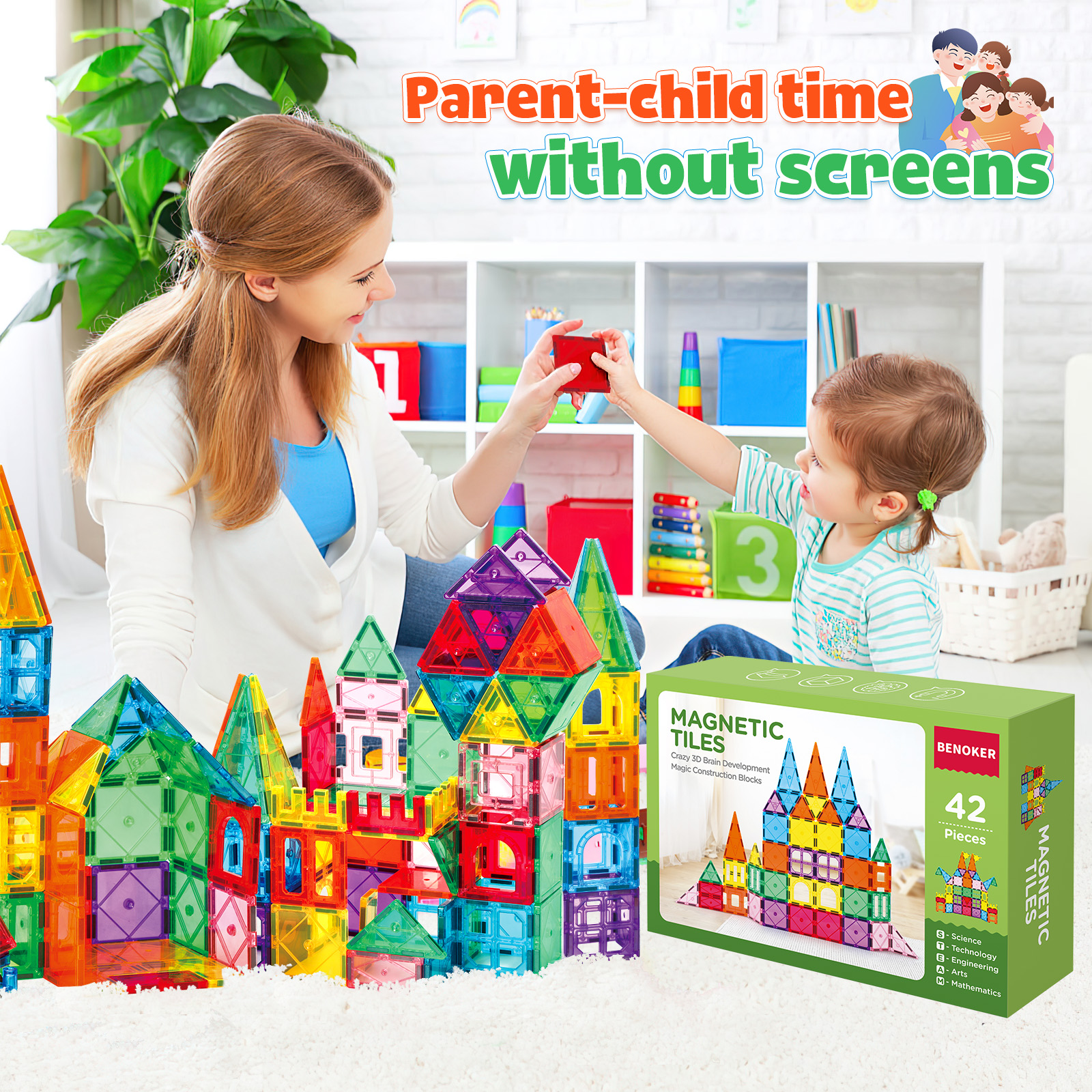 - 2.LEARNING THROUGH PLAY: Through colorful tiles, children's creativity can be stimulated, and they can create unique and visually appealing two- or three-dimensional structures to develop STEM-related skills.
